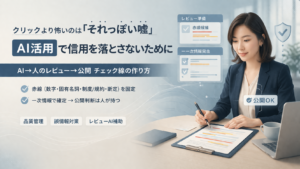 AI活用の“それっぽい嘘”を防ぐチェック線(レビュー)の作り方 2026年3月24日 | AI 「AI活用 AIのそれっぽい嘘を防ぐ」には、出力を主張に分解し、チェック線(レビュー)で潰すのが最短です。誤情報掲載で信用失墜した“失敗後”の立て直しとして、赤線項目と運用テンプレをまとめます。